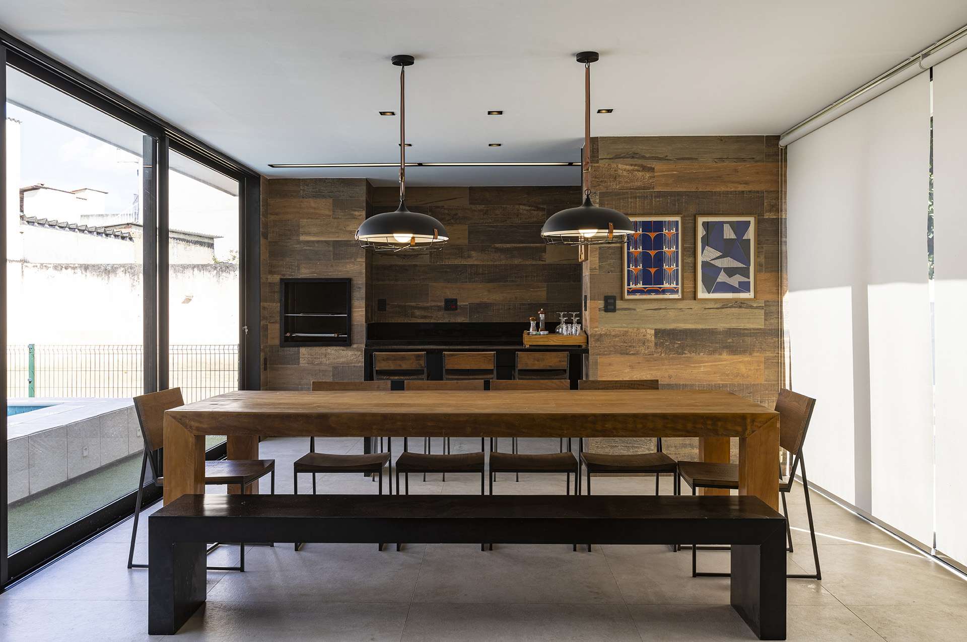Perfil do projeto: Fruto de um sonho antigo do cliente, este projeto foi criado para uma casa com um grande quintal, onde o proprietário sentia o imenso desejo de construir uma área de lazer para receber os amigos e a família. O espaço teria que ser confortável para recepcionar, além de ser útil em qualquer ocasião e horário: na preparação de um churrasco num lindo dia de sol ou durante um filme com pipoca à noite! Em outras palavras, um espaço exclusivo de lazer!
