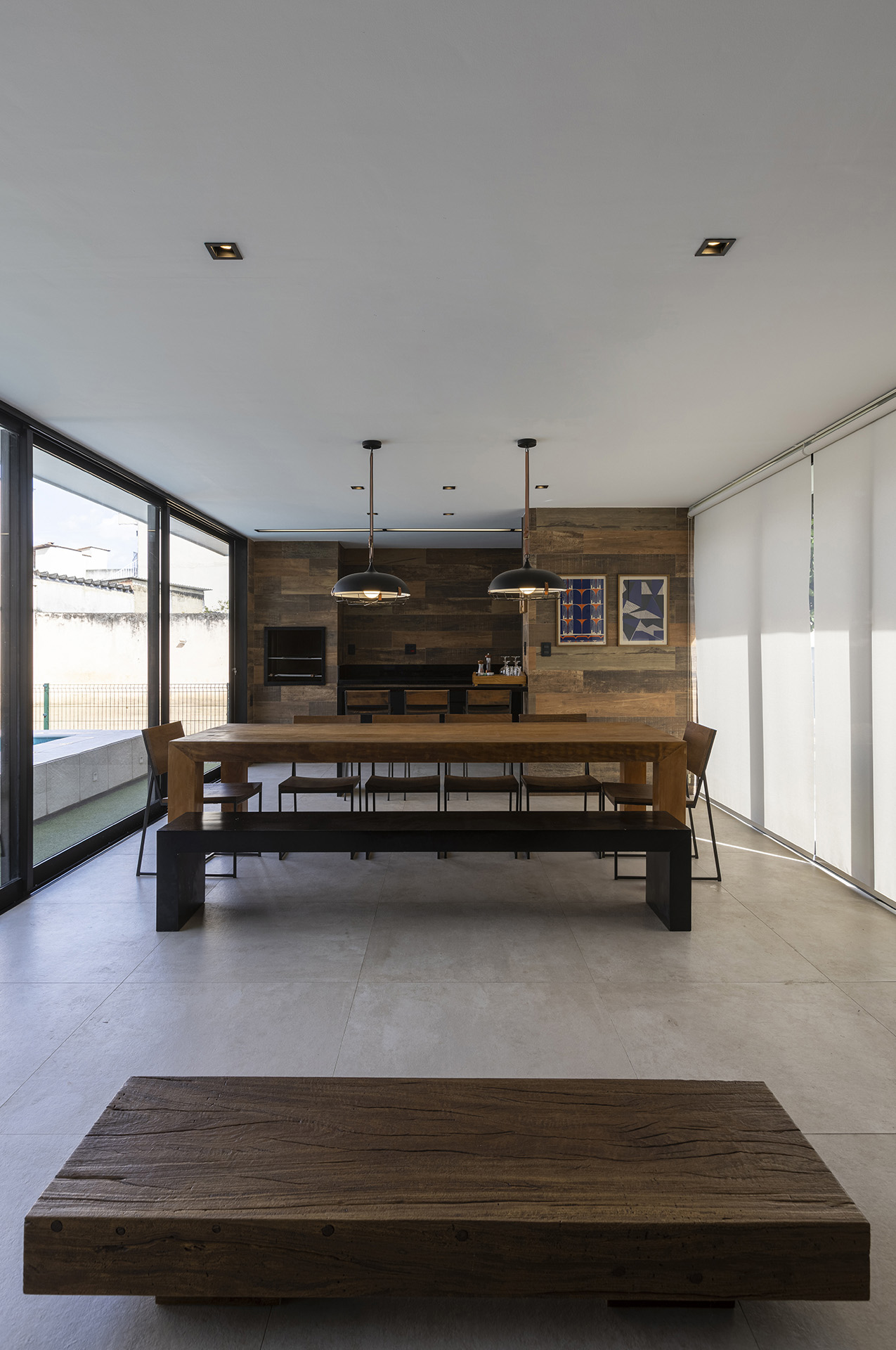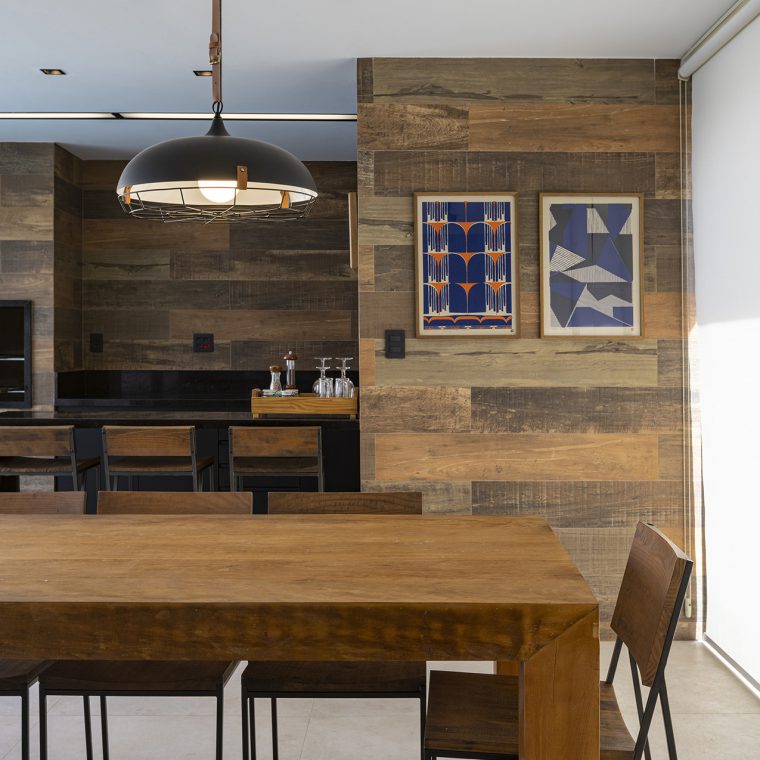 Os materiais usados foram escolhidos para compor uma paleta de cor mais sóbria e que ao mesmo tempo remetesse a elementos mais naturais, como, por exemplo, a madeira.