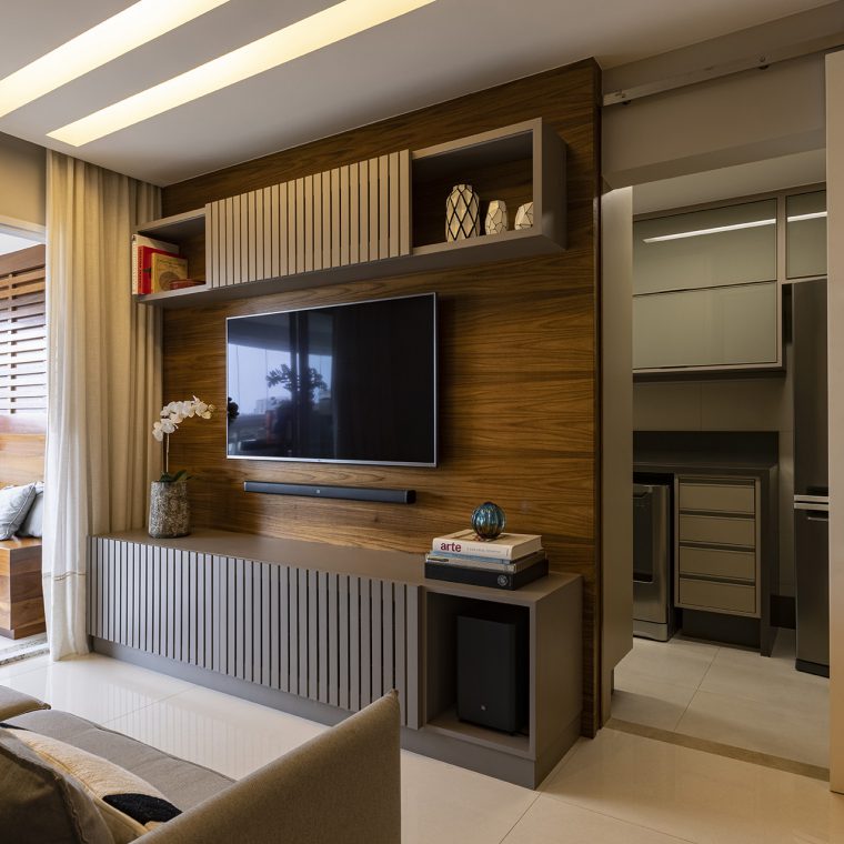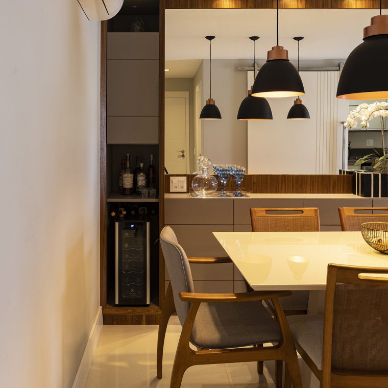 Elemento fundamental para conseguirmos otimizar os espaços, a marcenaria foi outro ponto interessante deste projeto, pois tornou possível unir beleza e funcionalidade.