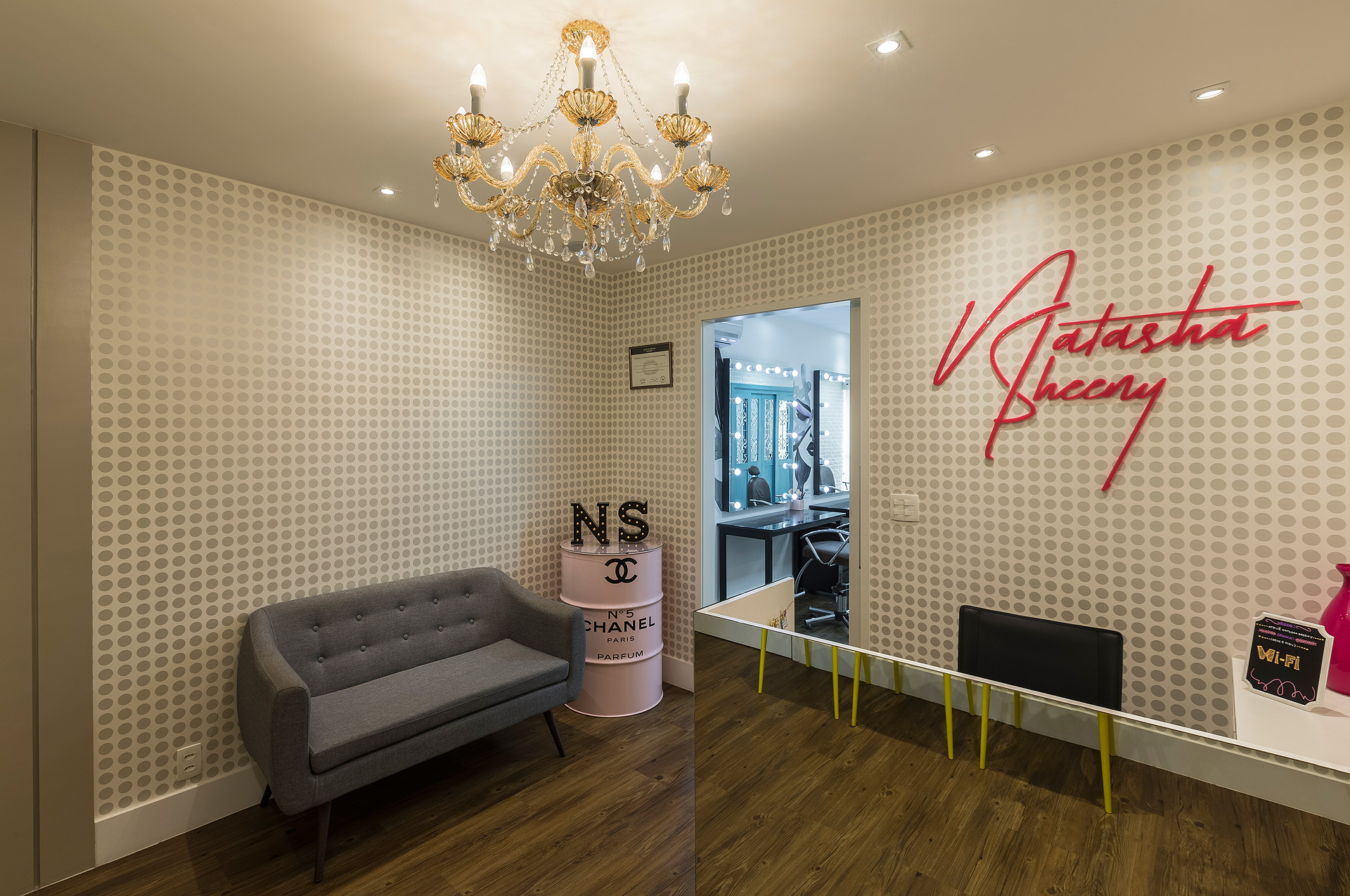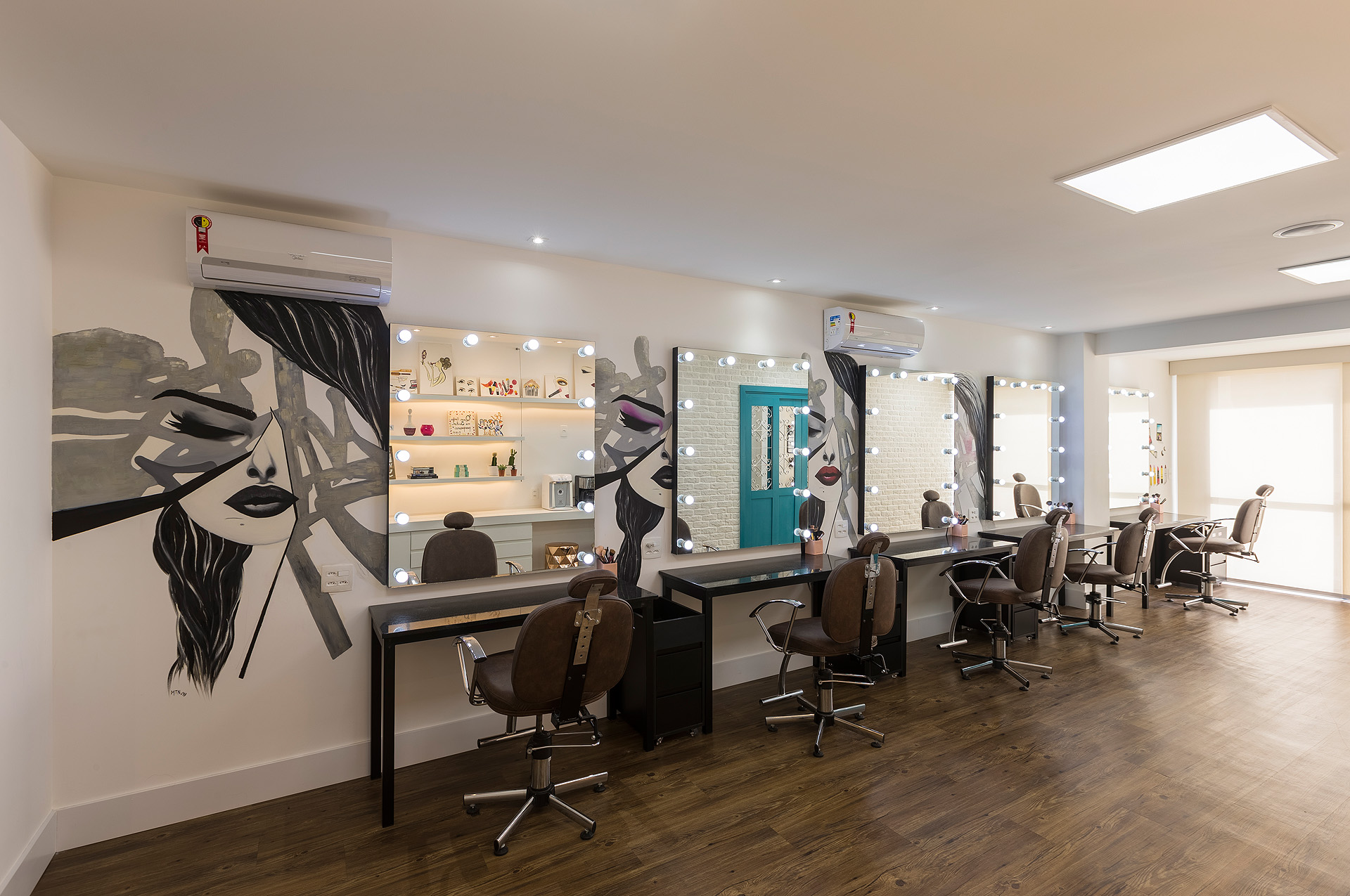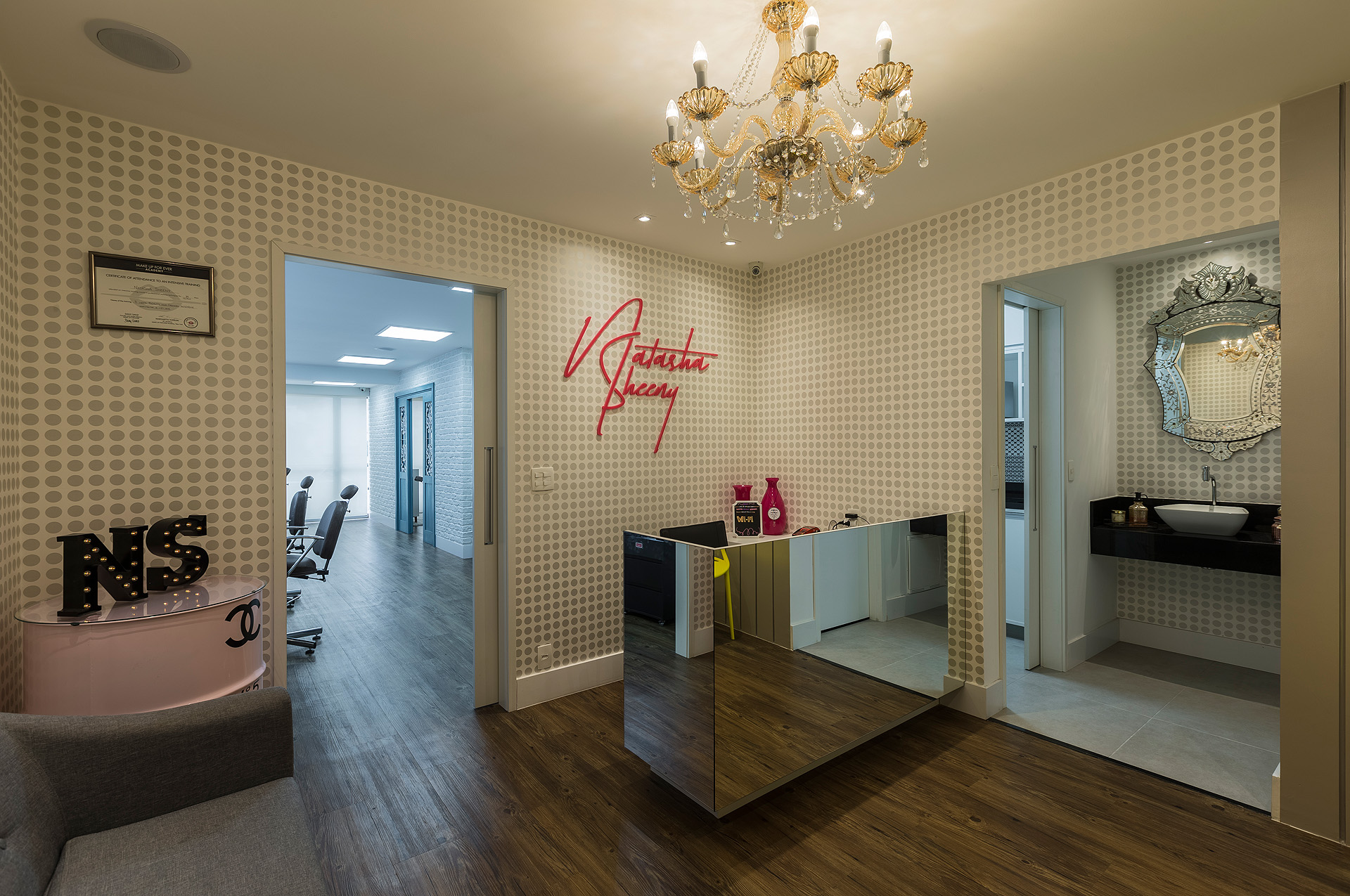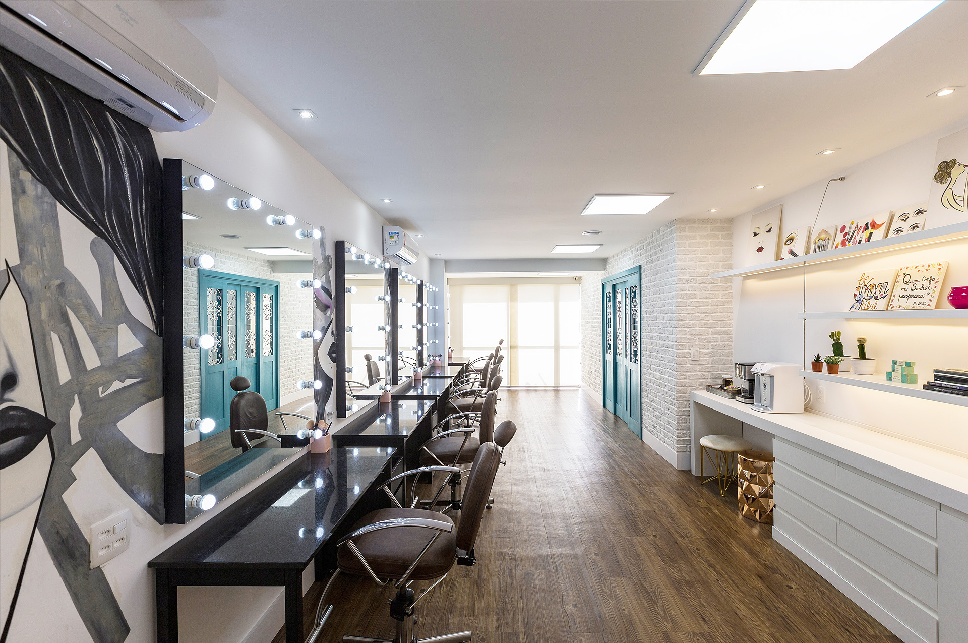 Perfil do projeto: Este projeto foi bem divertido e diferente de tudo que eu já havia feito. A proprietária já era minha cliente e o atelier tem uma história interessante porque é fruto da paixão dela (ex-farmacêutica) pelo mundo da maquiagem. Ela já tinha um atelier, em uma sala menor e, com o crescimento do negócio, buscou um novo espaço.