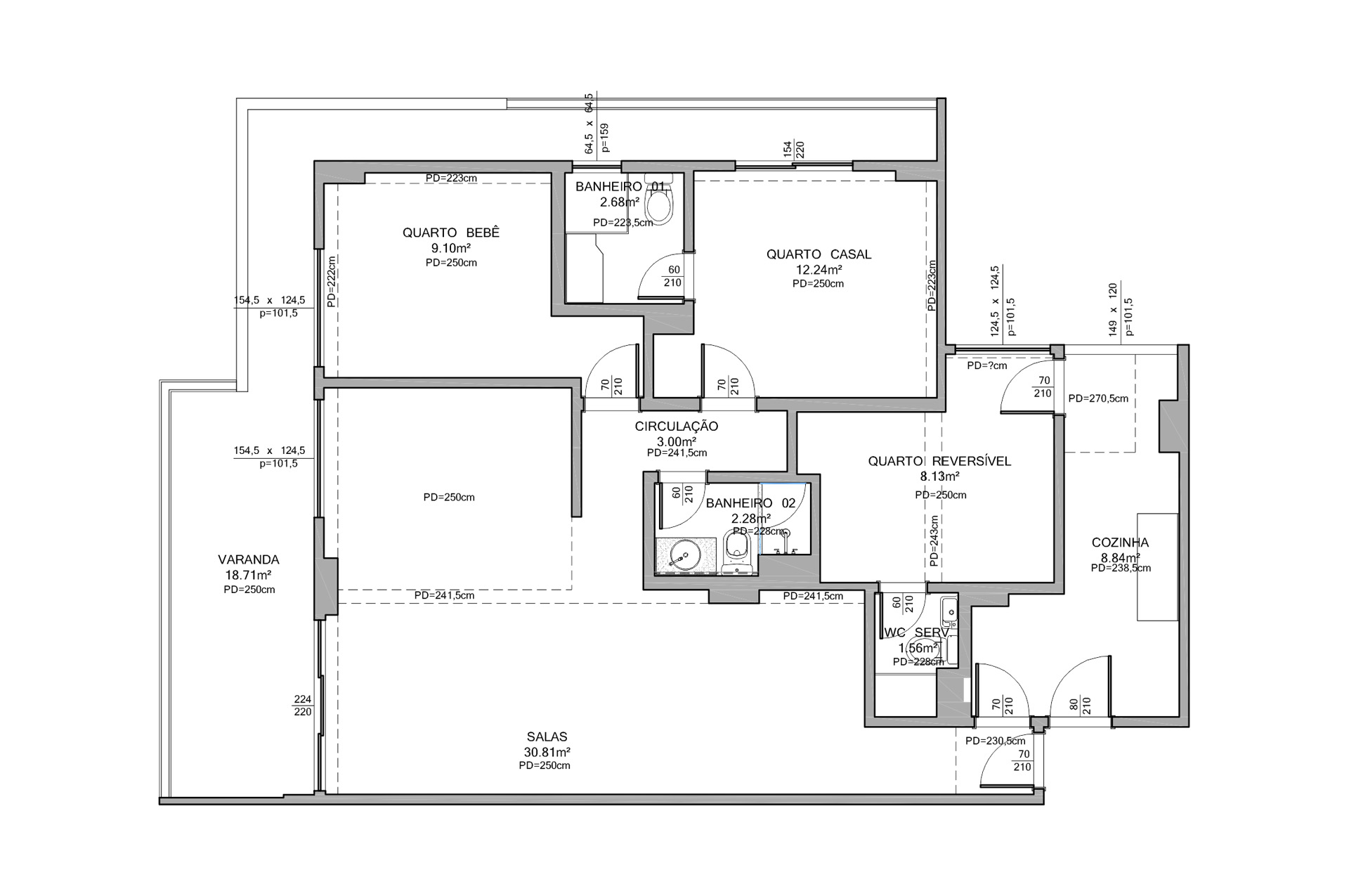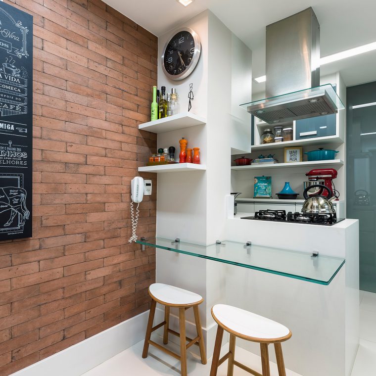 Perfil do projeto: Durante o processo de estudos, decidiu-se eliminar o quarto de serviço para ampliar a cozinha, a área de serviço e o quarto do casal. Com esta modificação, foi possível encaixar uma ilha na cozinha. Esta ilha era um desejo do cliente. Com a implantação da ilha, a bancada pode crescer. Na cozinha a reforma foi total: as bancadas foram trocadas, o piso foi trocado, o revestimento das paredes foi substituído por pintura. Apenas acima da bancada principal, foram aplicados porcelanatos PORTO DESIGN imitando madeira.